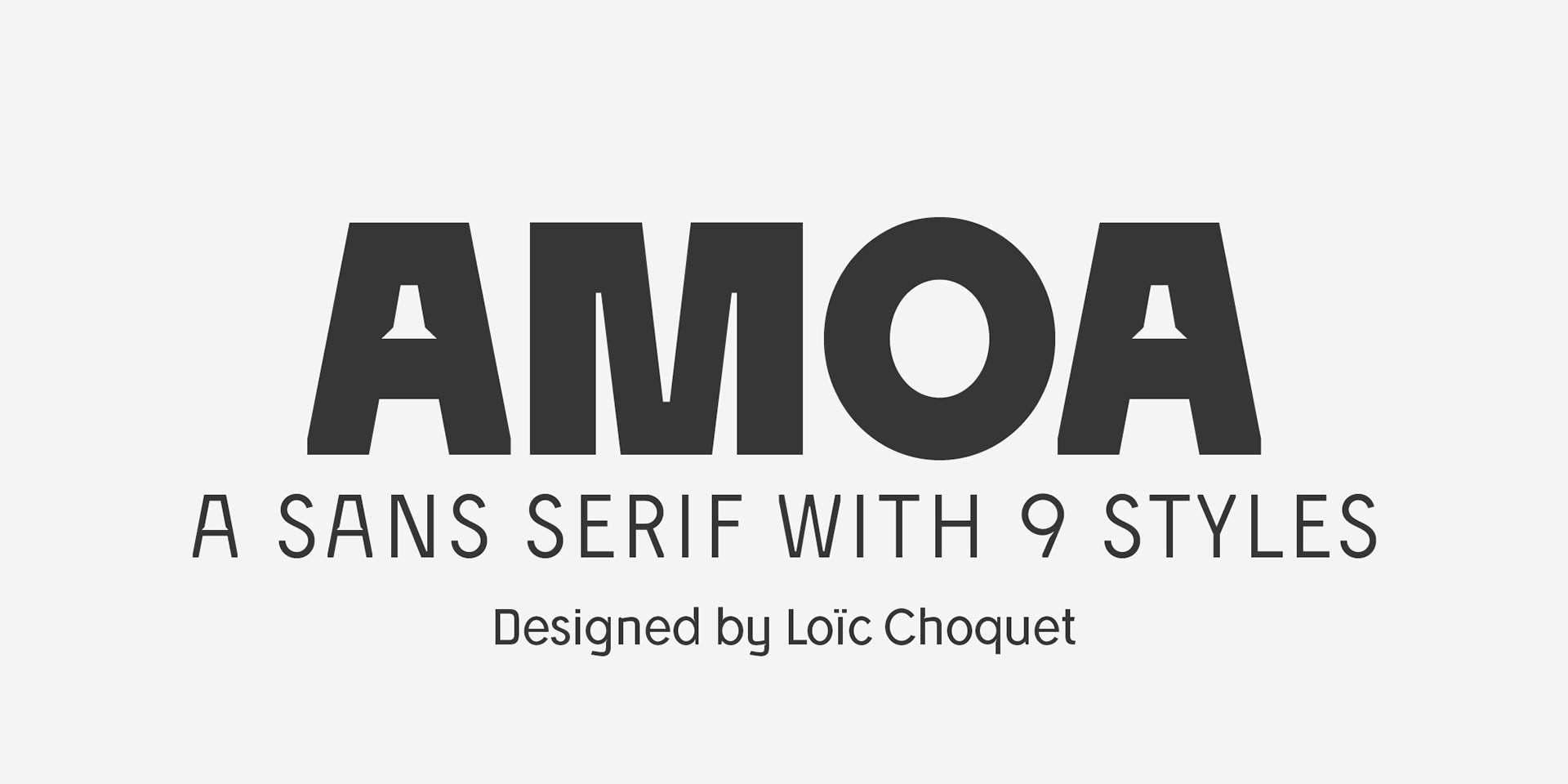 Amoa est un caractère conçu tant pour le titrage que pour la composition de textes, même en petits corps. Cette police propose 9 graisses, 511 glyphes par fonte, de véritables petites capitales… ce qui la rend parfaitement adaptée aux travaux d'édition. Amoa fonctionne aussi bien pour le design imprimé que numérique.